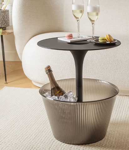 Cooler e mesinha em aço inoxidável que pode ser usado também como porta treco com design único e elegante de Jacob Wagner